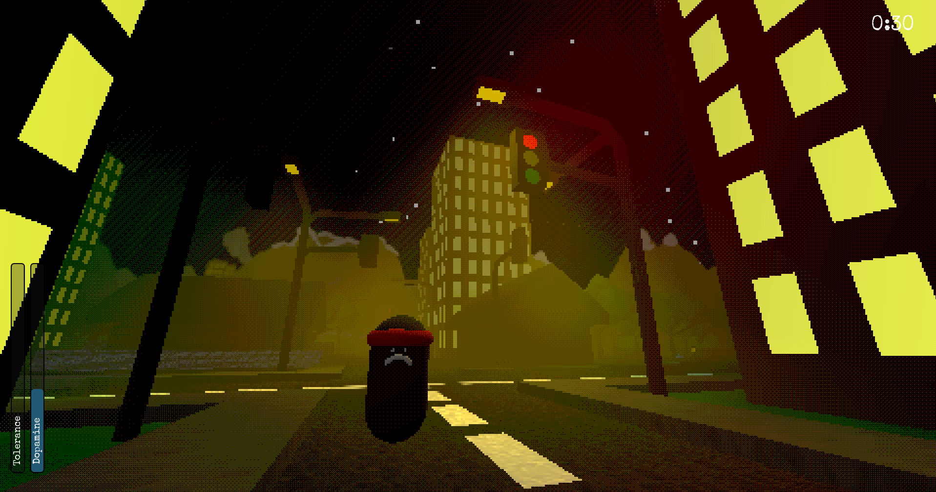 Avoid the pigs while collecting drugs from the street to keep your dopamine from falling too low.
